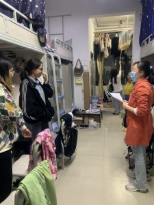 在走访过程中,老师们重点了解了同学们在校期间的思想和学习生活状况,向每位员工清楚讲述了疫情防控责任及个人卫生防护等方面的具体要求,准确排查员工人数。老师们与同学进行亲切地交流,对每位同学们提出的的问题都耐心细致予以解答。同时,要求同学们从近期违反公司疫情防控和校园安全管理规定受处分的同学中深刻汲取教训,切实增强疫情防控意识,自觉履行疫情防控规定,遵守校纪校规,非必要不外出。在走访中,王永生还叮嘱同学们要调整好自己的心态,