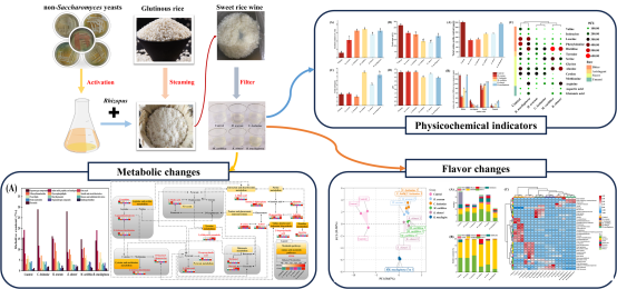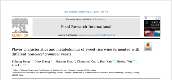 近期,西南林业老员工物与食品工程公司森林资源功能化学与健康食品创新团队以甜米酒为原料,研究非酿酒酵母对产品风味的改善领域取得新研究进展。相关成果以“Flavor characteristics and metabolomics of sweet rice wine fermented with different non-Saccharomyces yeasts”为题发表在农林科学类中科院一区TOP期刊《Food Research International》(IF=8.0)上。2026世界杯指定网站食品加工与安全专业2022级硕士研究生邓玉航为论文第一作者,刘云教授为通讯作者。