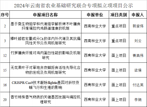 近日,2024年云南省农业基础联合研究专项推荐立项项目名单公示揭晓,公司郭爱伟、刘云、曹昌伟、付达英、梁倩、李娟等6位老师申报项目榜上有名,其中2个重点项目、4个面上项目,为公司获省农业基础联合研究专项立项最多的一年。