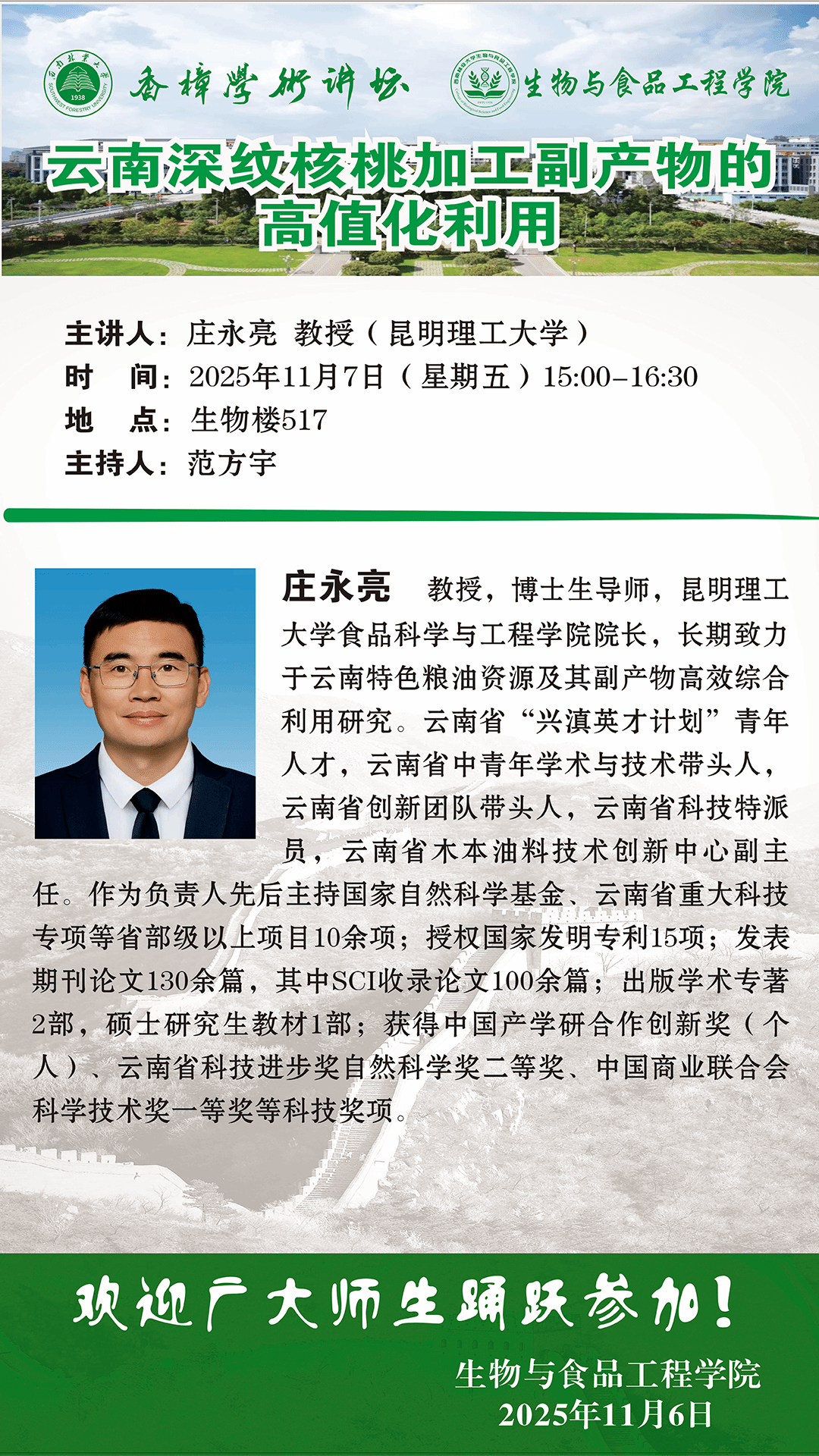 【创新团队系列学术报告】云南深纹核桃加工副产物的高值化利用