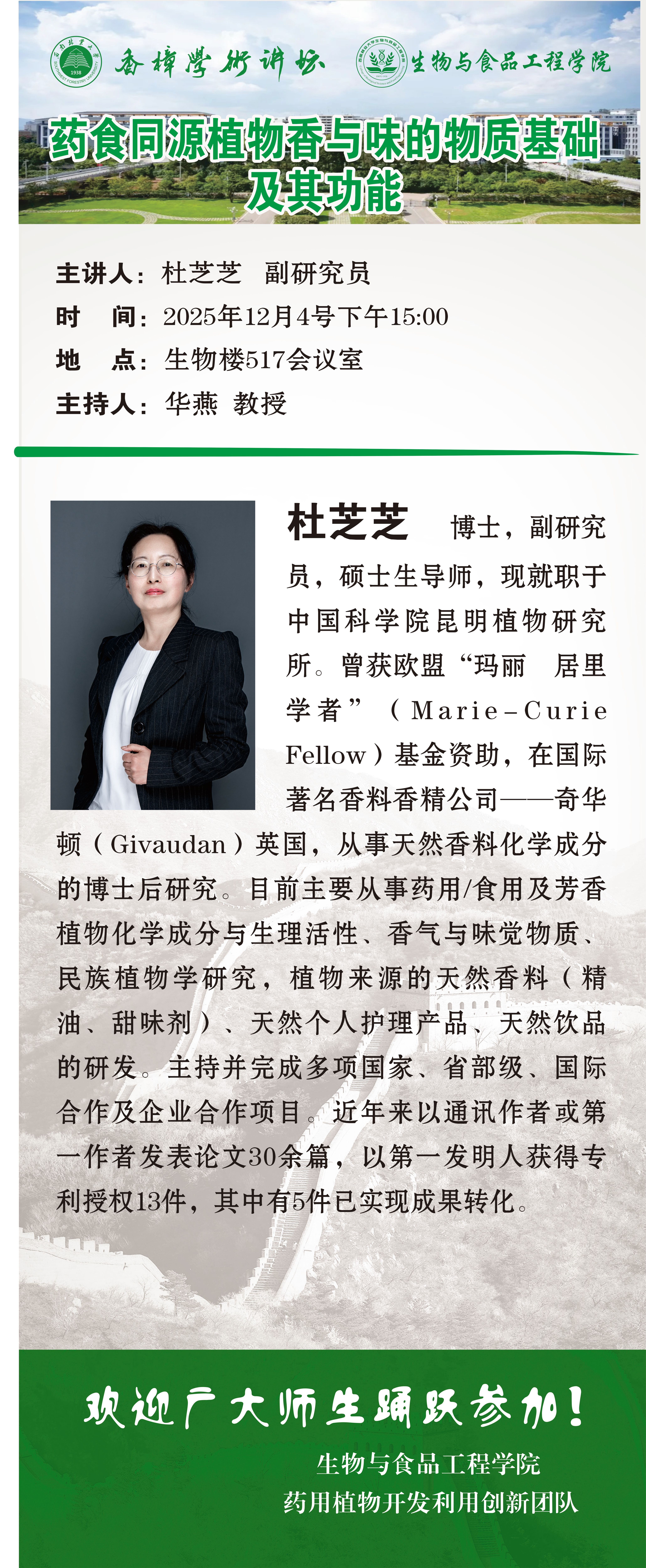 【创新团队系列学术报告】药食同源植物香与味的物质基础及其功能