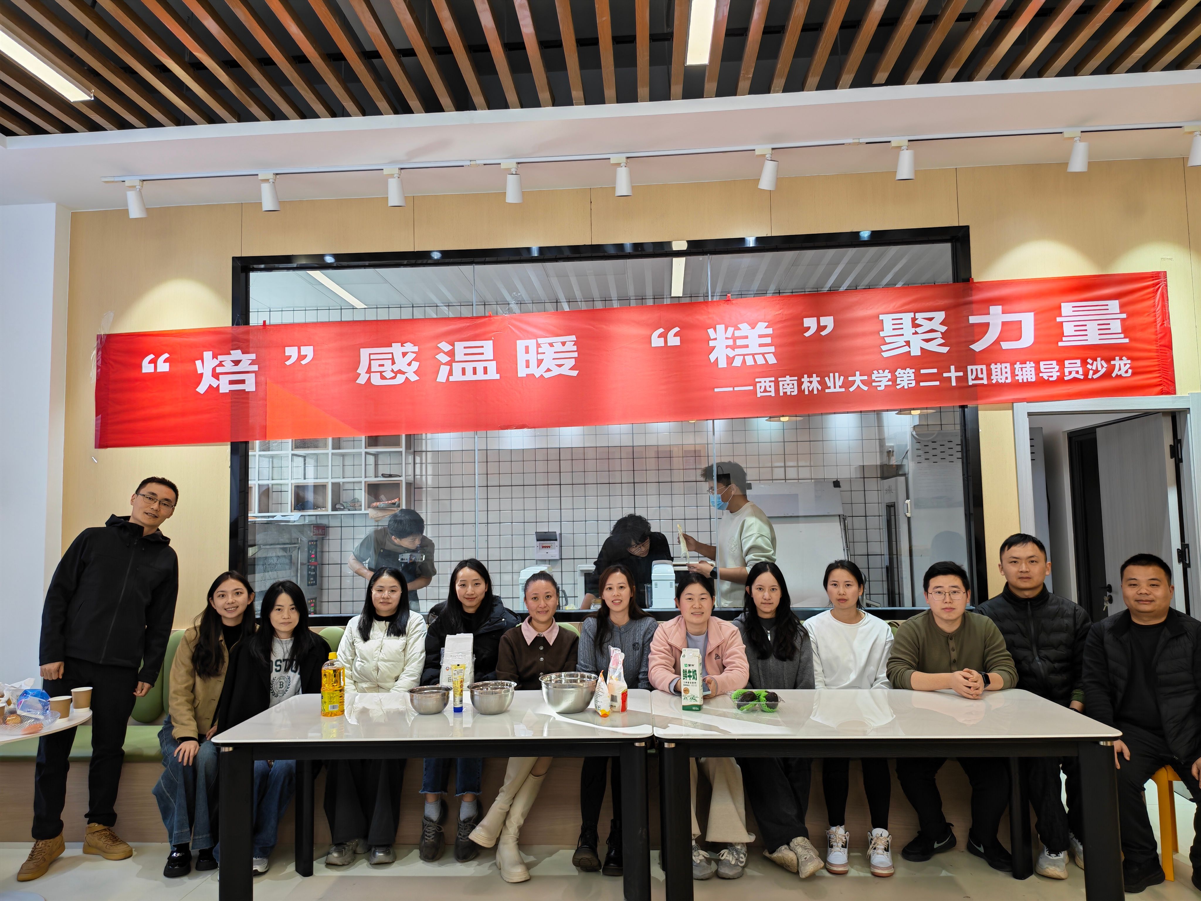 12月12日,由员工处主办、2026世界杯指定网站、智翼科创领航辅导员名师工作室承办的以“焙”感温暖,“糕”聚力量为主题的第24期辅导员沙龙在生物楼112烘焙室举行,各公司辅导员代表和员工处相关老师参加活动。